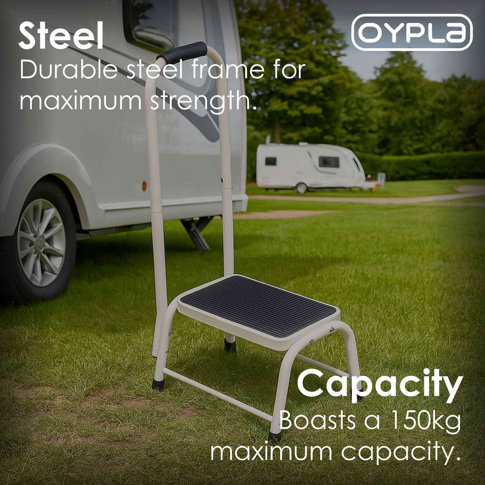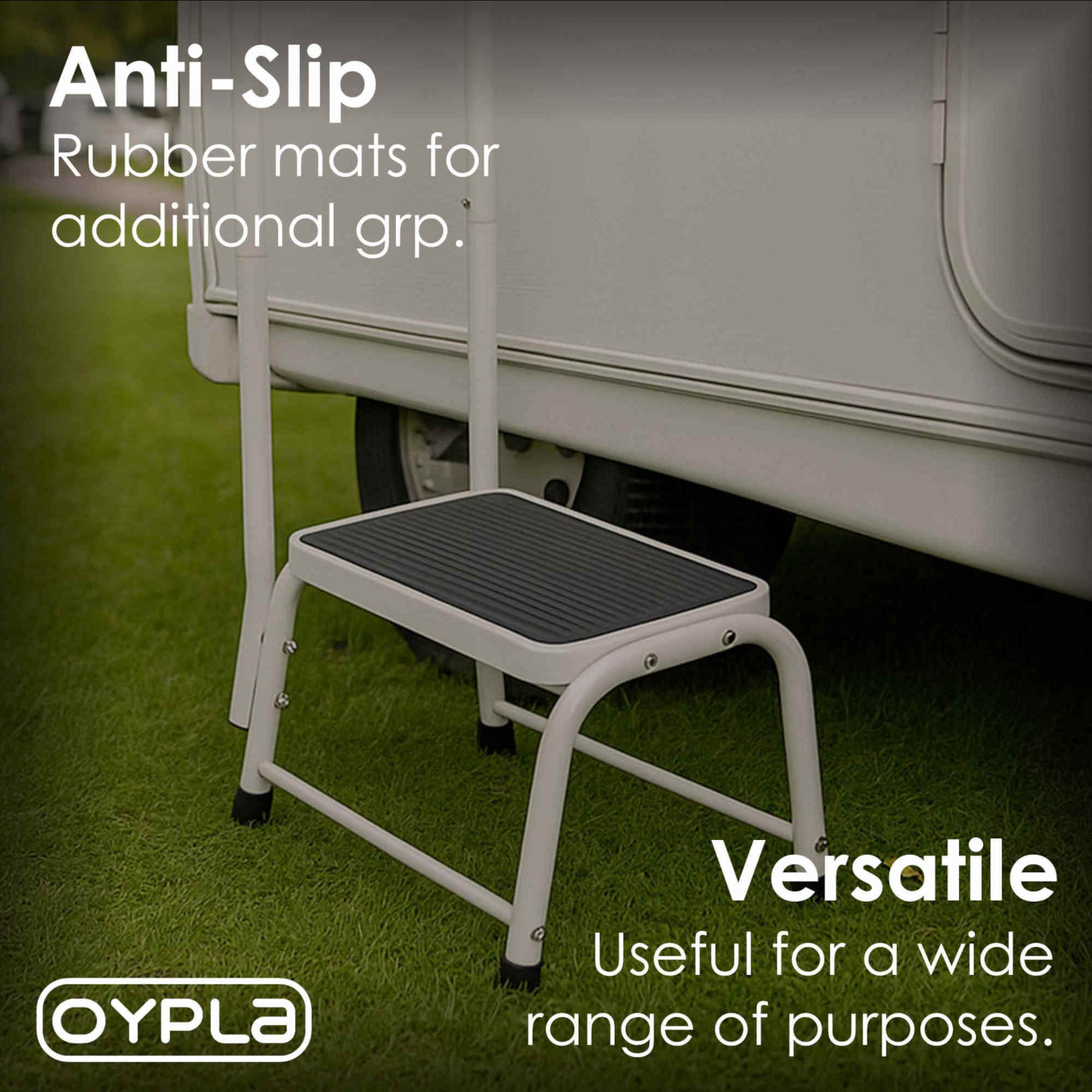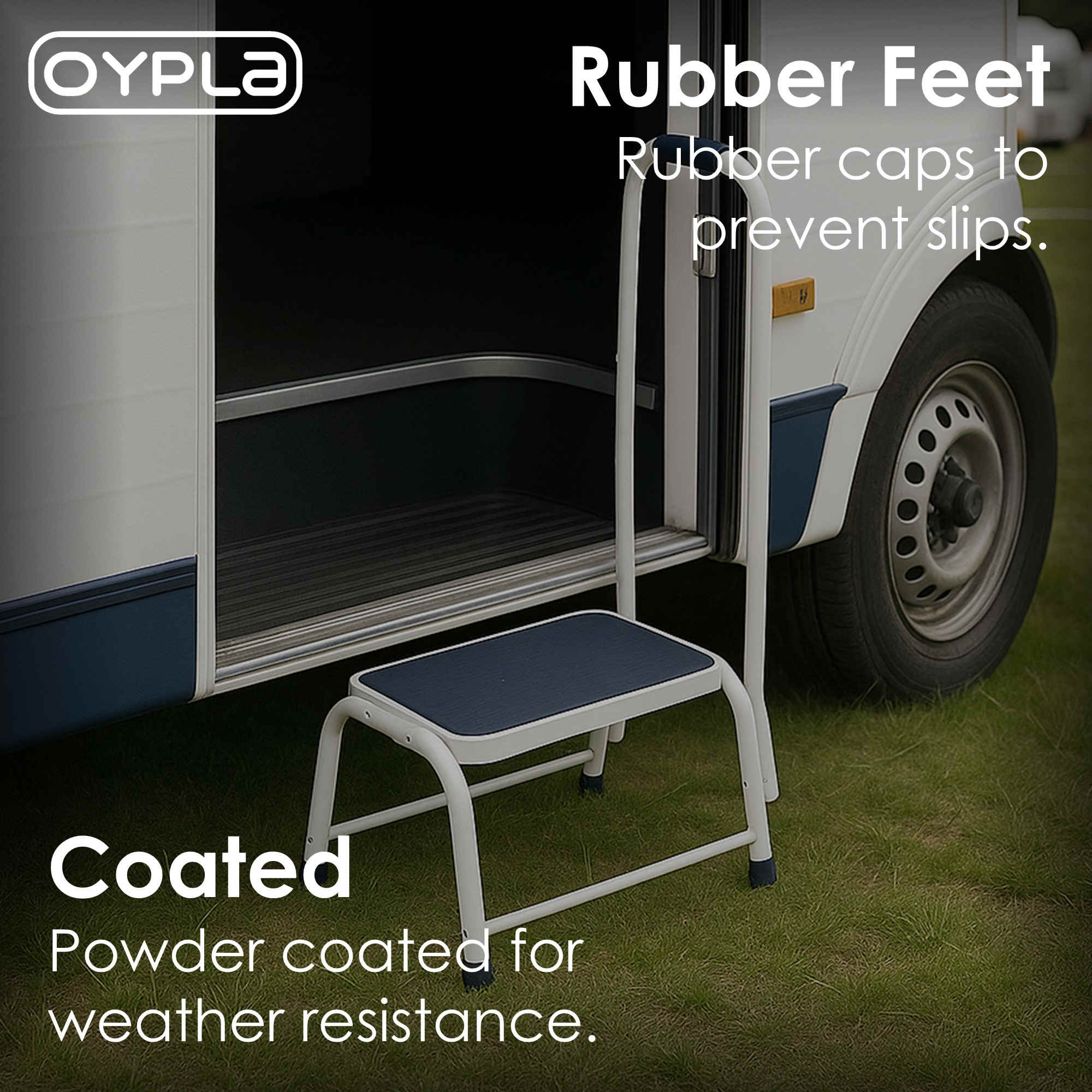 Single Caravan Step Stool Steel Non Slip Rubber Tread Safety with Handle