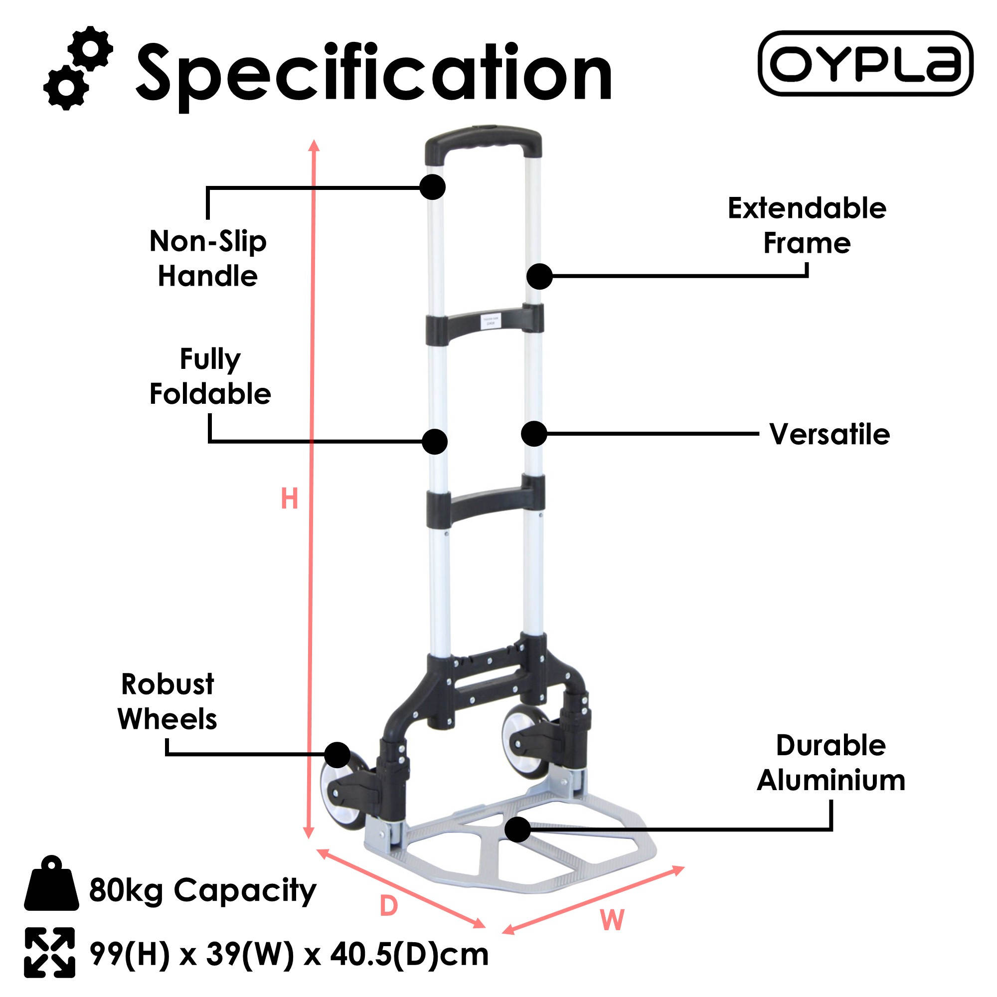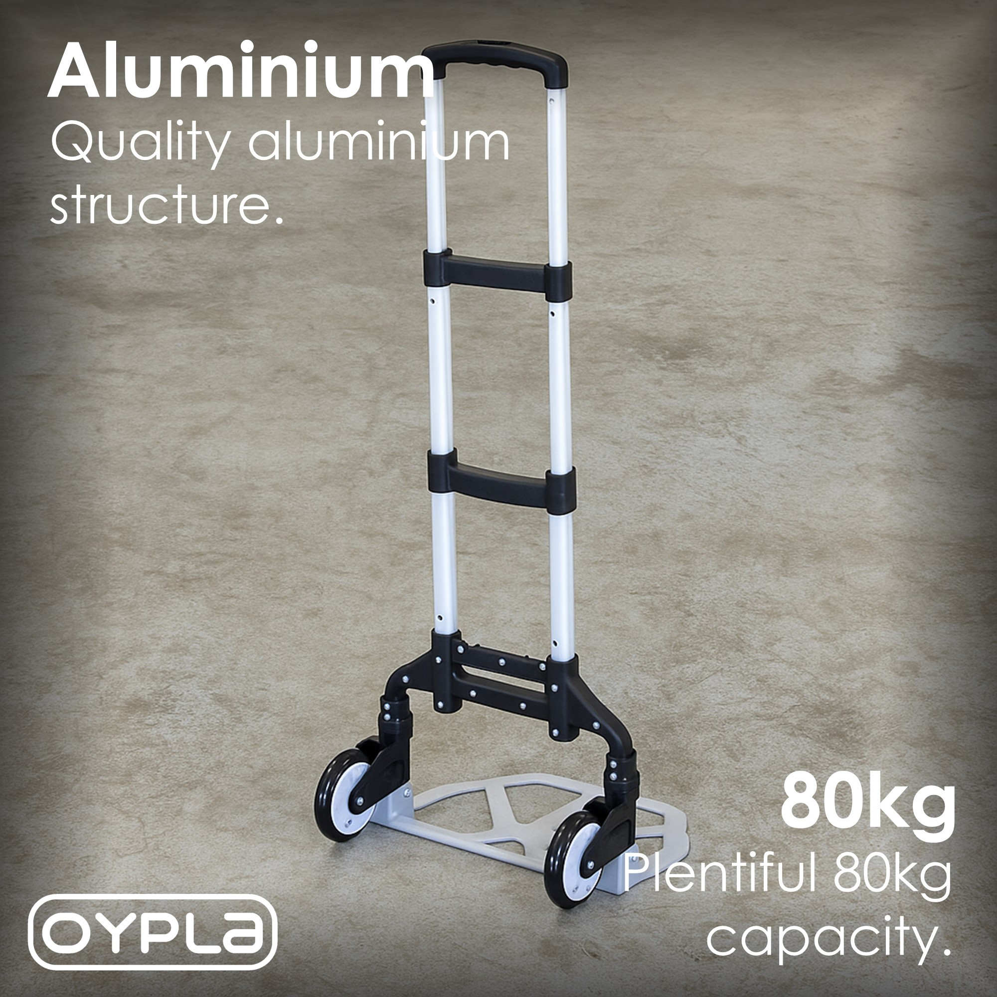 The folding hand trolley has an impressive capacity of 80kg making it great for use around the house or for commercial uses. The trolley has a folding frame, making it easy to store and transport and also features an extending non-slip handle making it easy to hold and move. The trolley is manufactured from high quality aluminium making it sturdy and durable as well as lightweight and easy to lift.