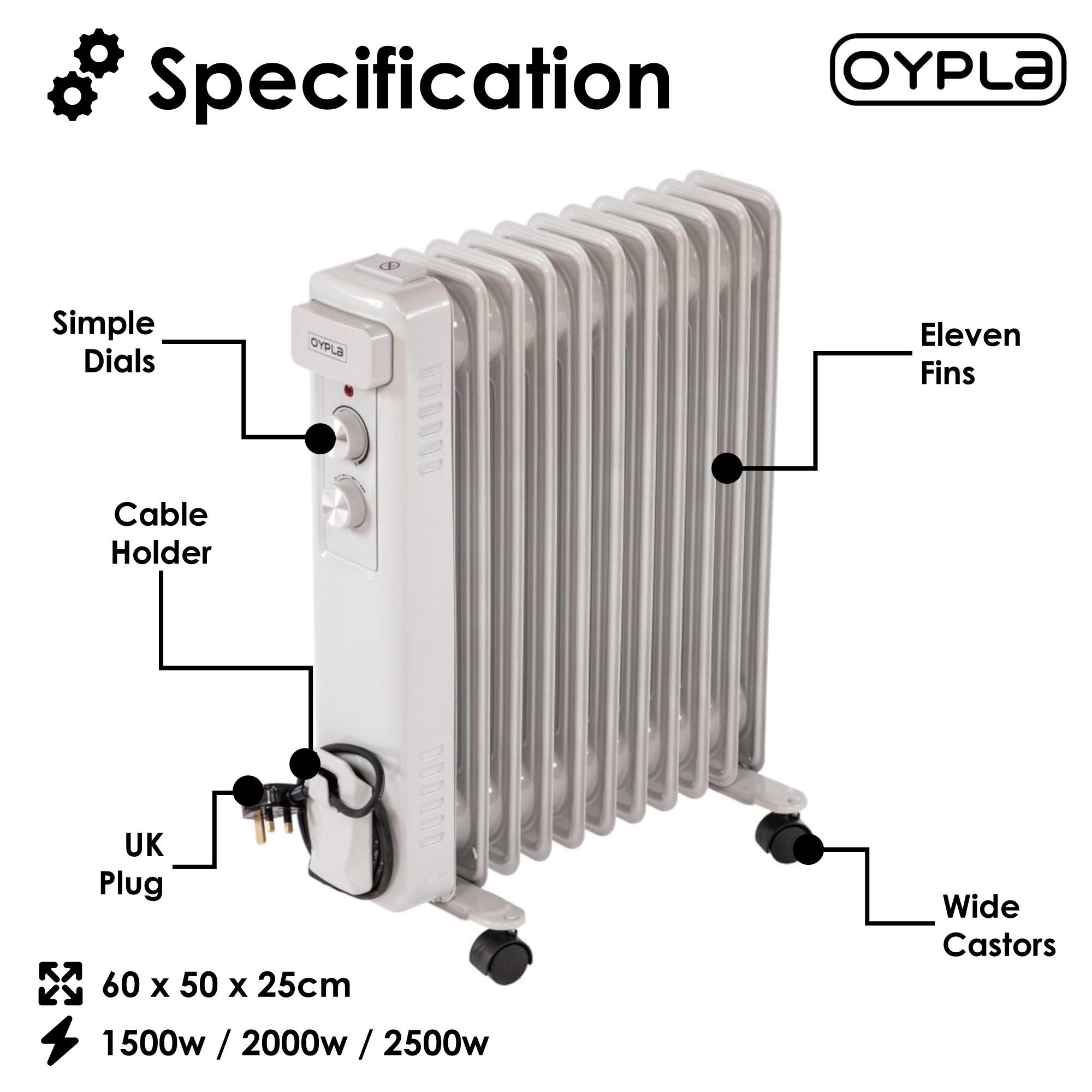 2500W 11 Fin Portable Oil Filled Radiator Electric Heater