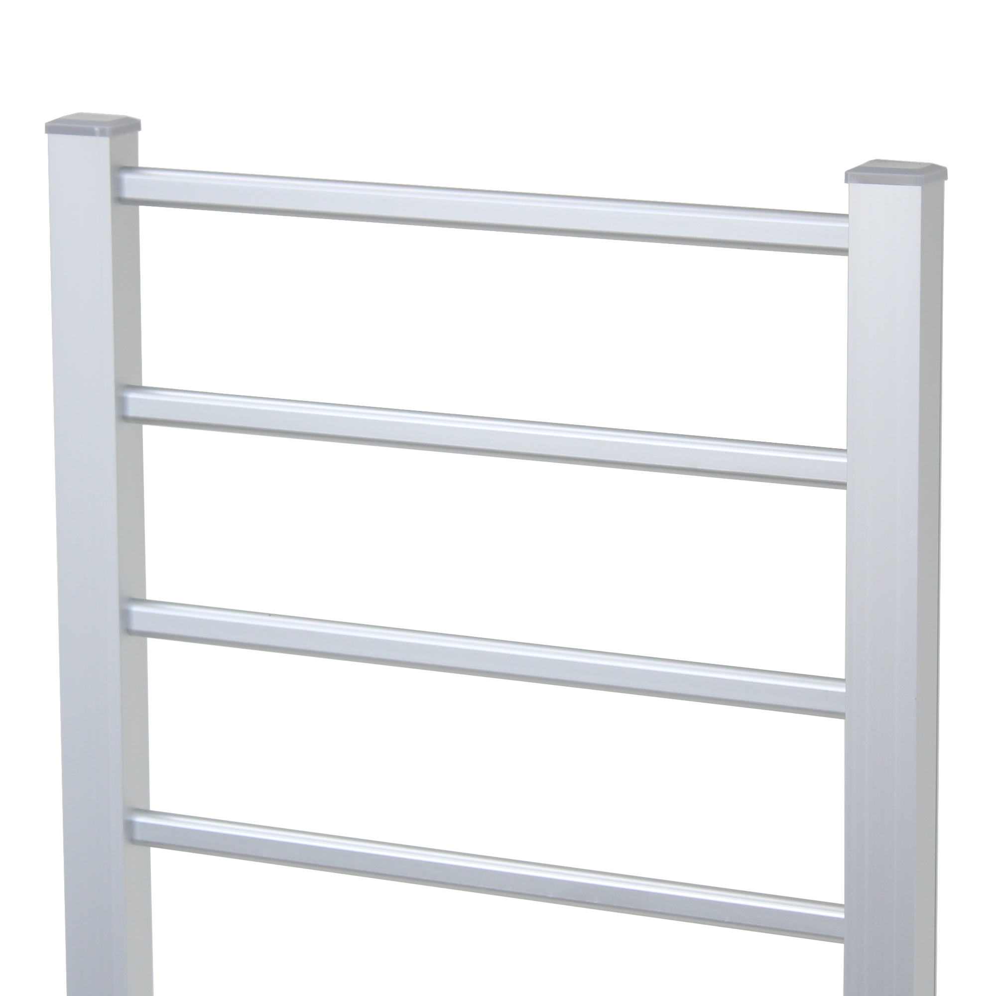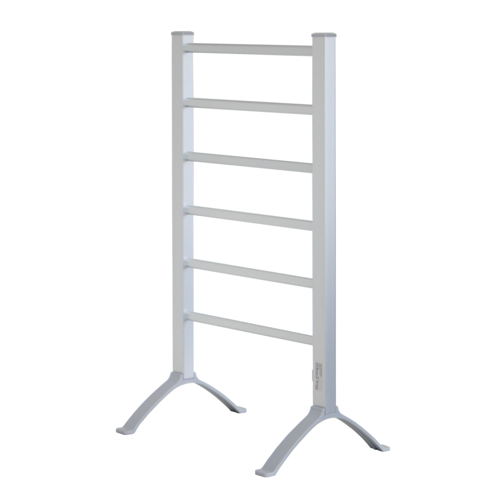 The electric towel warmer is free standing and portable – featuring a mains plug so it can be used in any room. The towel warmer heats up in seconds and is perfect for drying towels and clothes whatever the weather or just to heat up clothes in cold weather. The warmer has a low energy consumption – costing less then 3p per hour to run.