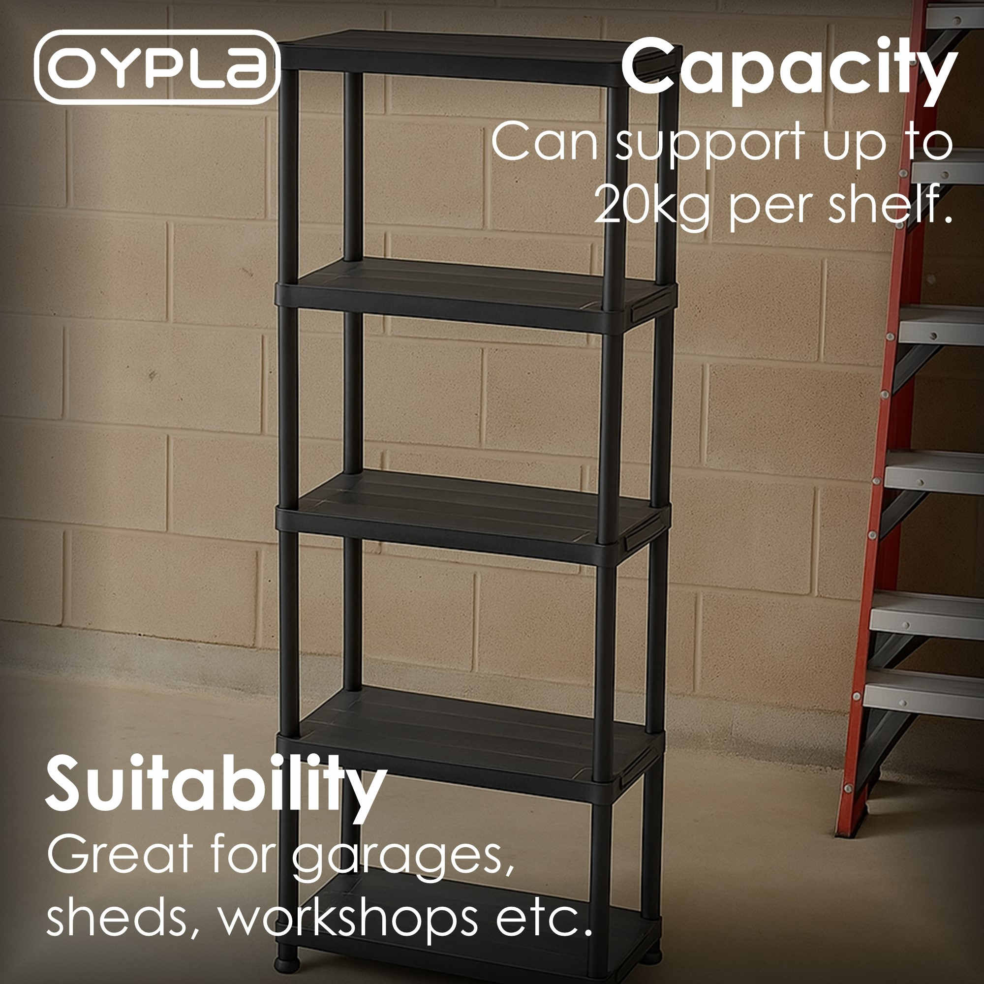 2x 5 Tier Black Plastic Heavy Duty Shelving Racking Storage Unit