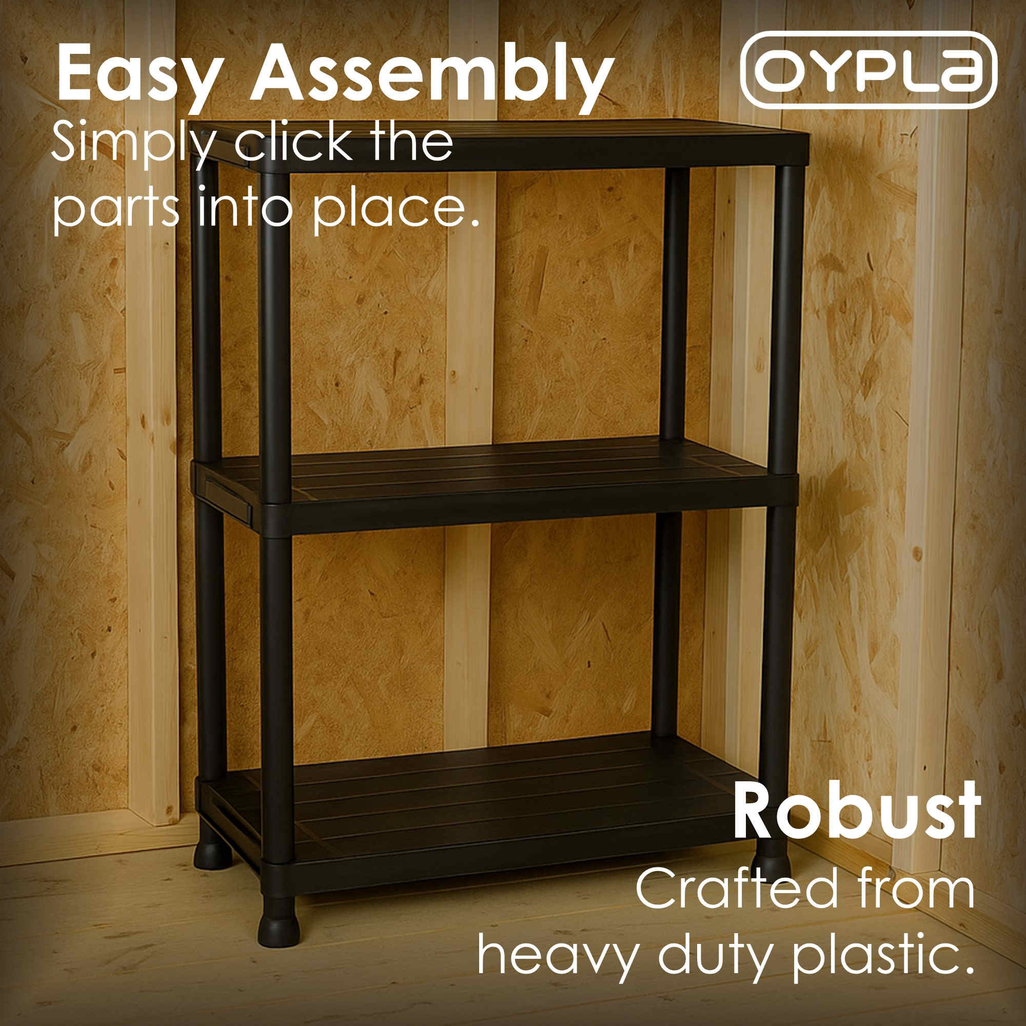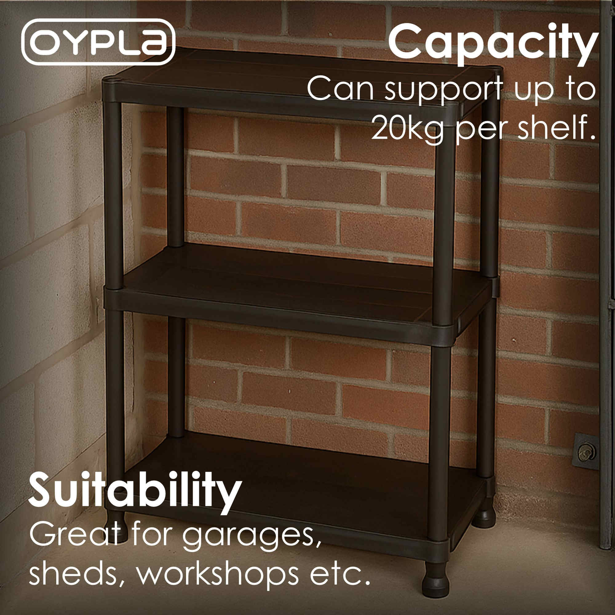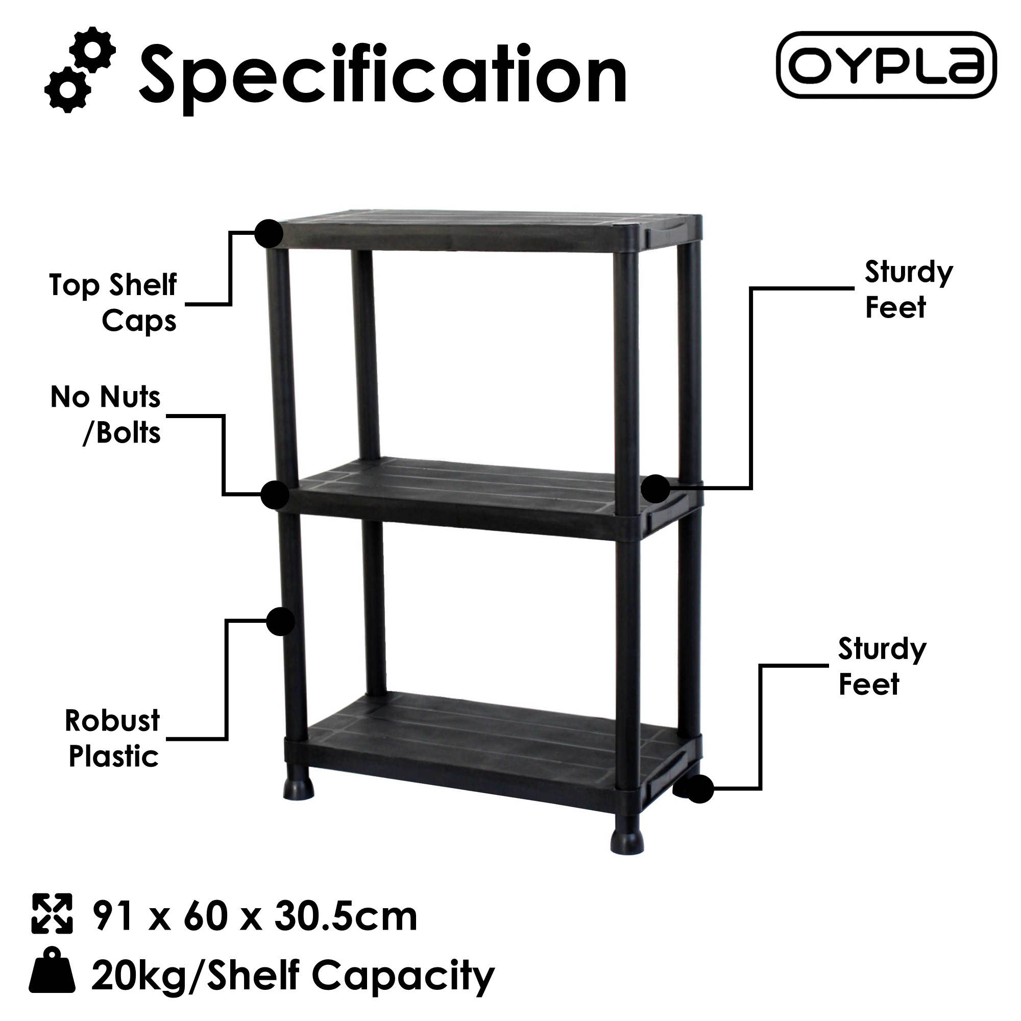 The black plastic racking is easy to assemble with no nuts or bolts and can be put up and taken down in seconds. The racking is made from robust, heavy duty plastic which is non-rusting and easy to clean. The shelves are able to carry an impressive 20kg UDL each.