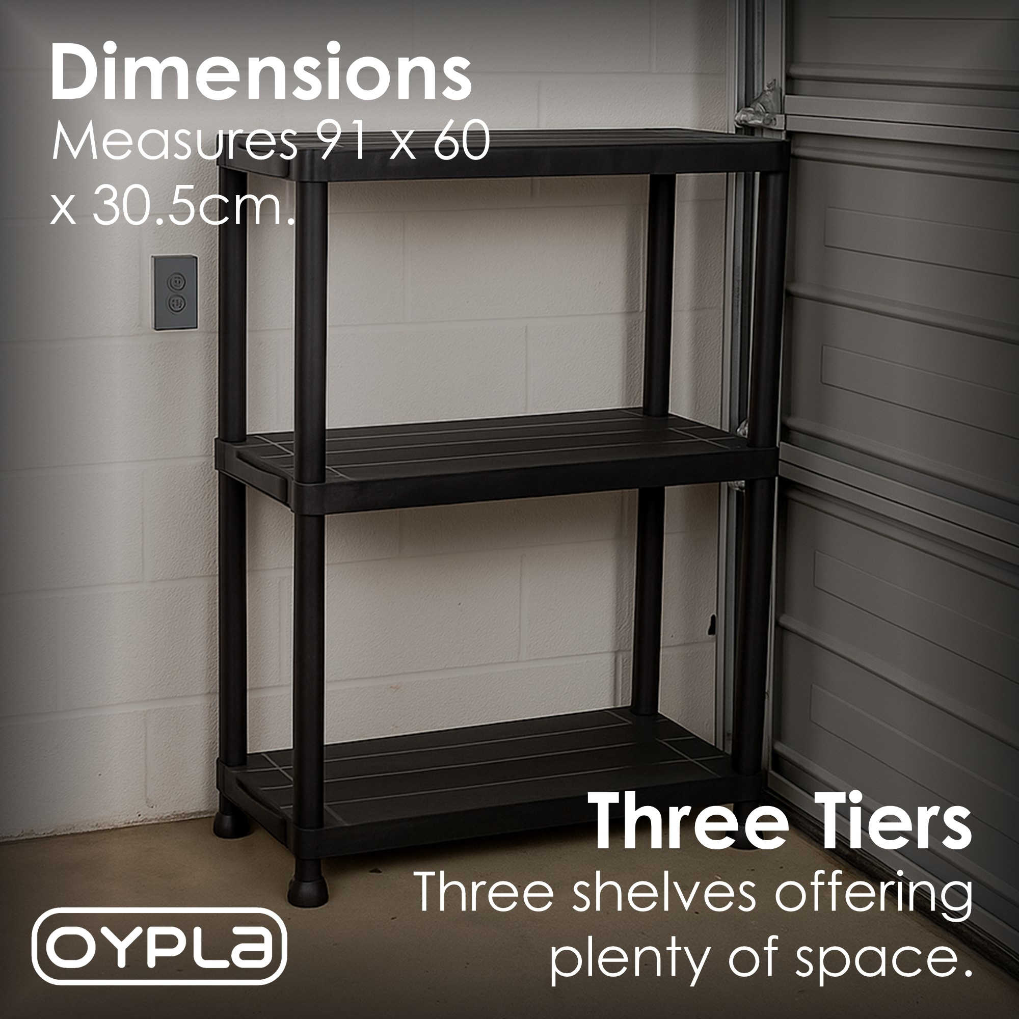 3 Tier Black Plastic Heavy Duty Shelving Racking Storage Unit