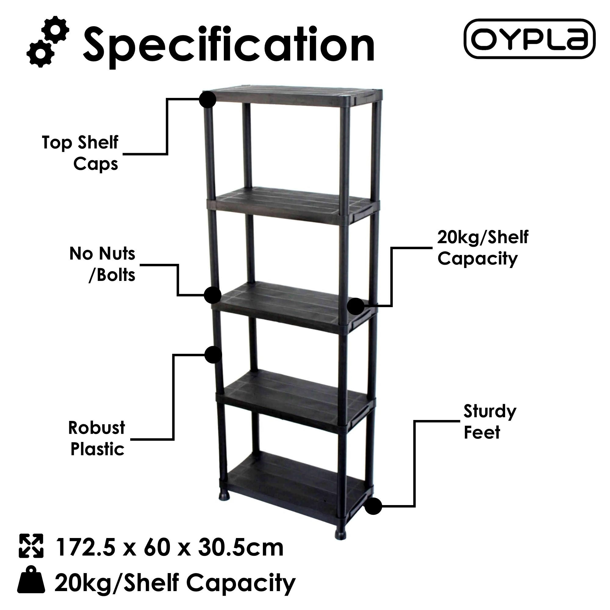 5 Tier Black Plastic Heavy Duty Shelving Racking Storage Unit