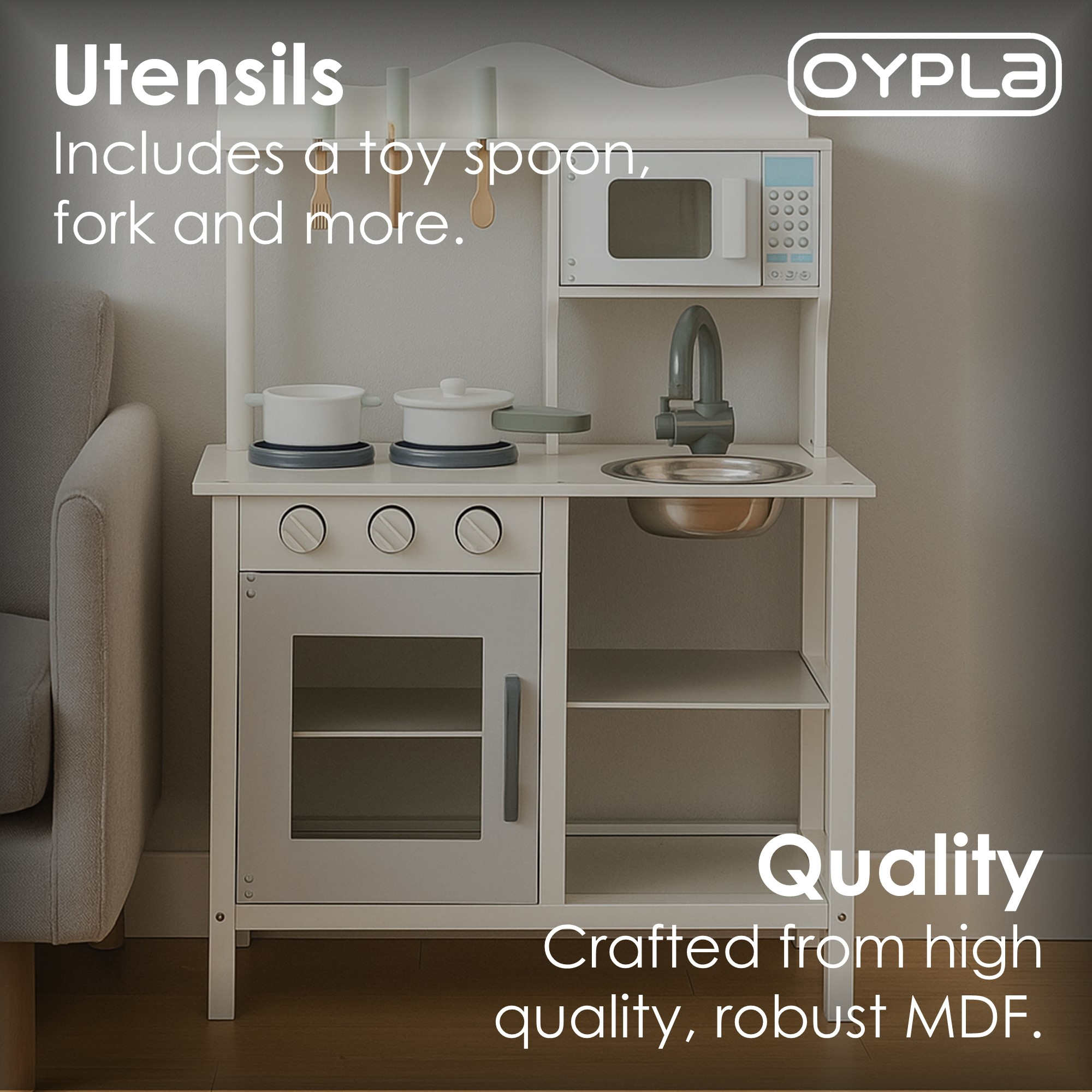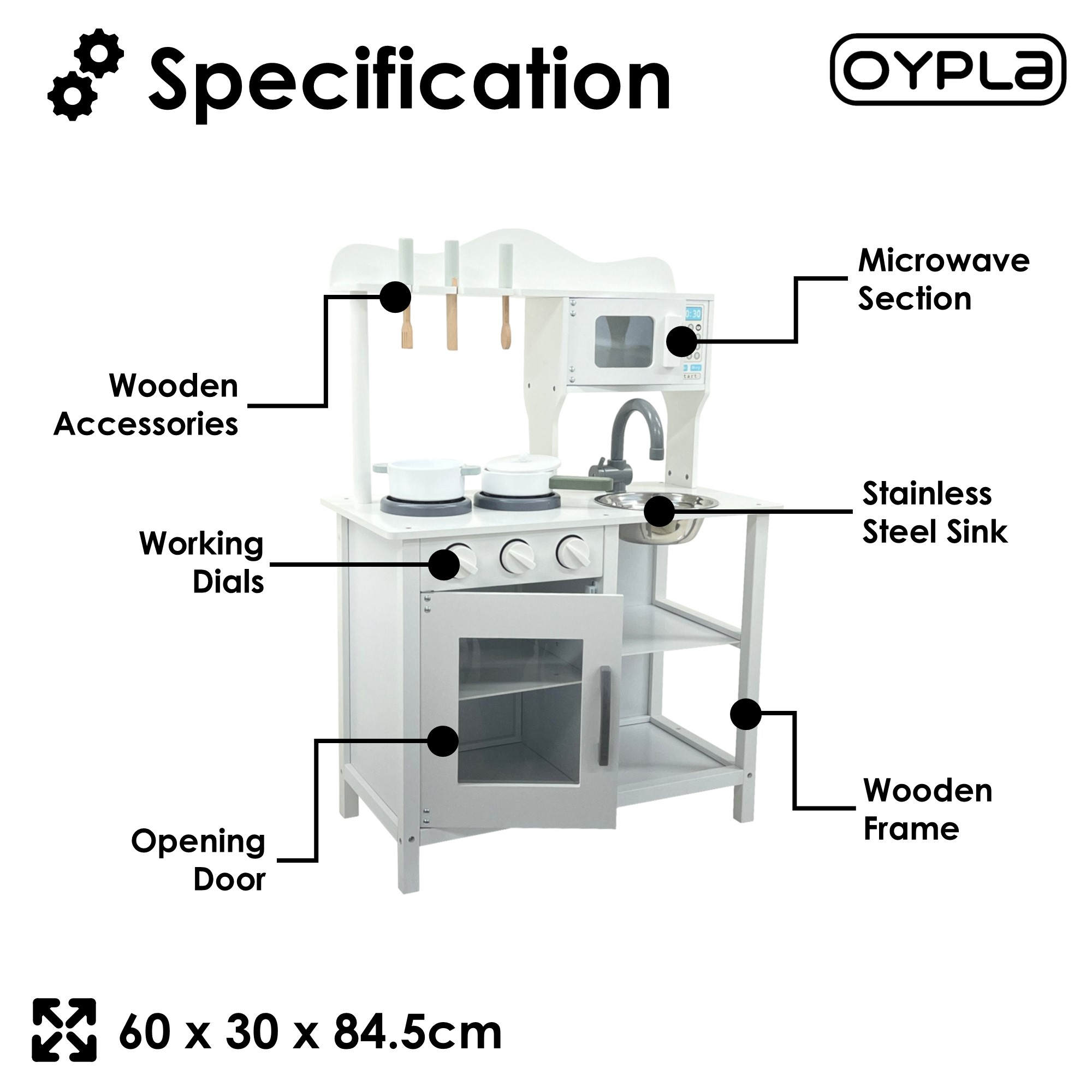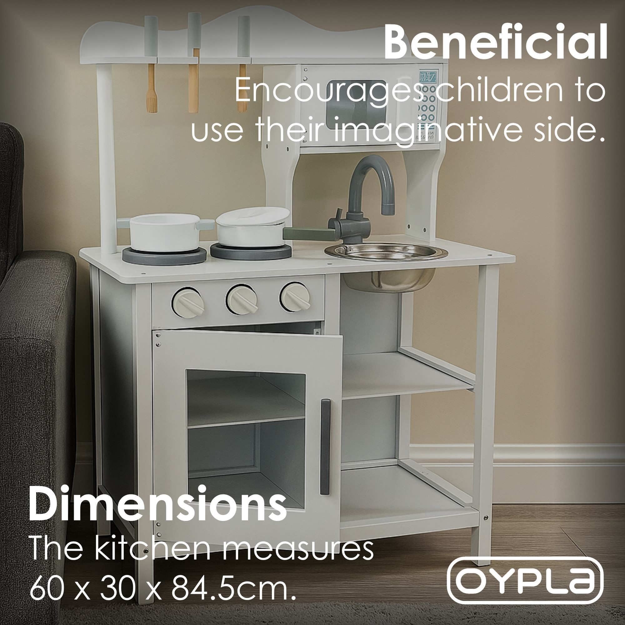 Childrens Kids Roleplay Wooden Play Kitchen Cooking Playset with Utensils