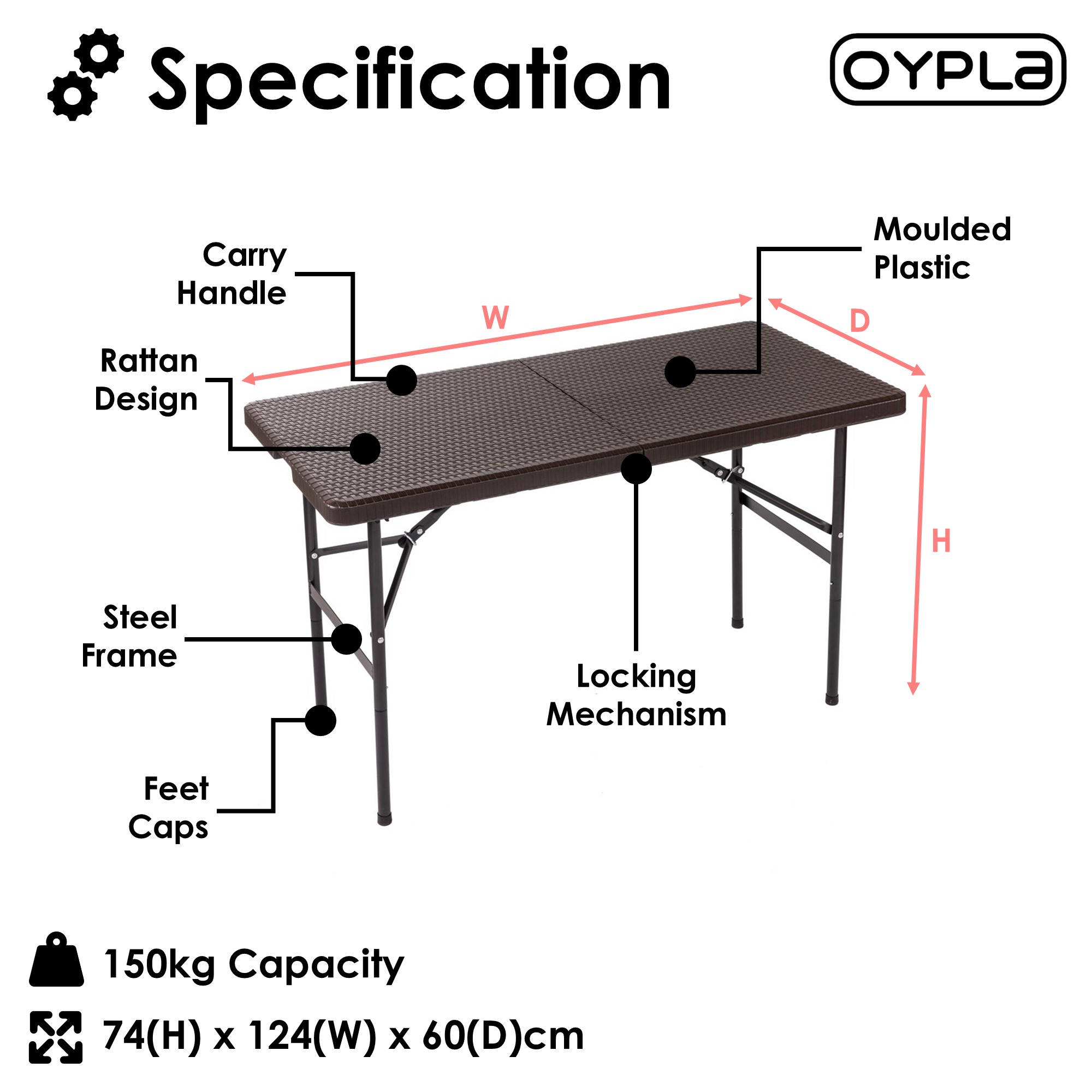 The table top is made out of a high density rattan-effect moulded plastic that is designed to give you a long lasting finish whilst at the same time being very easy to keep clean - so it will last many winters and summers making this table great value for money! It's lightweight also makes it extremely portable and it includes a built in carry handle - ideal for trips away!
