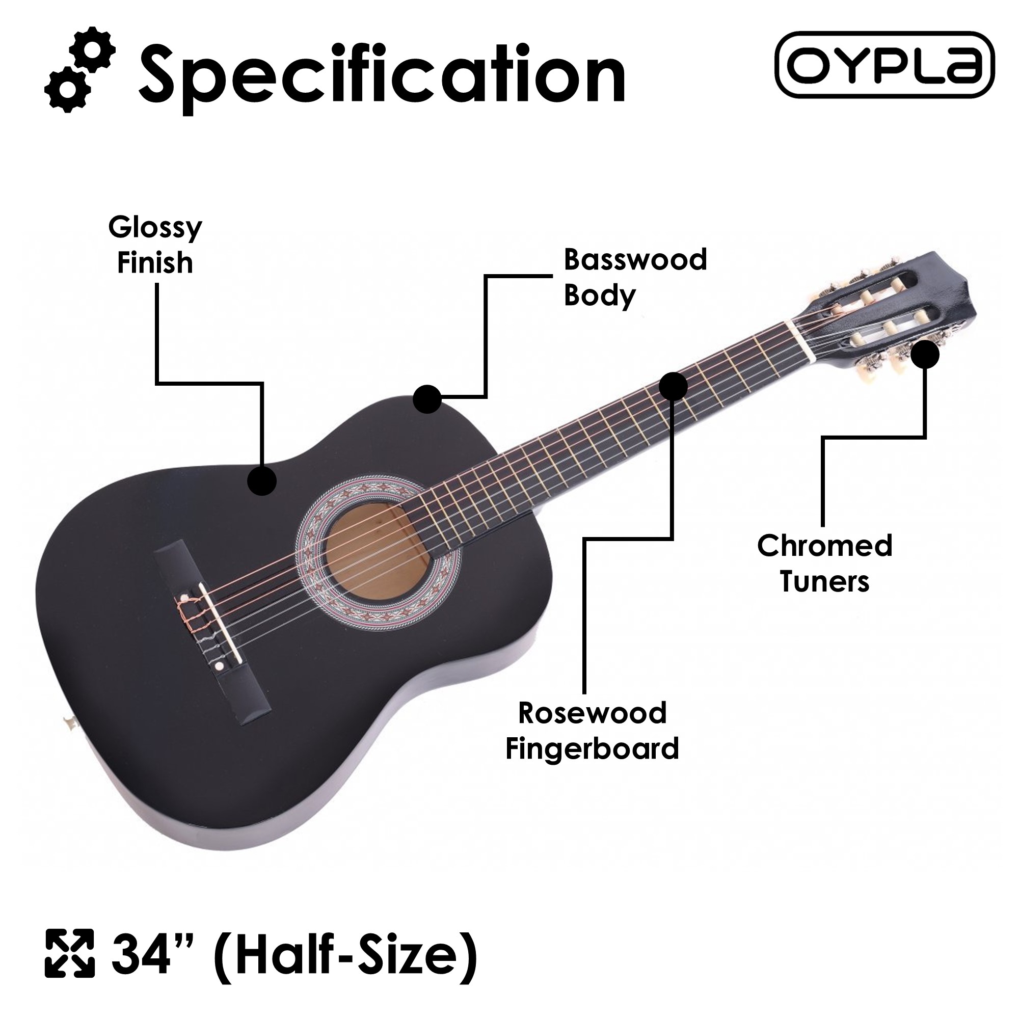 Black 34" Half Size 1/2 6 String Classical Acoustic Guitar